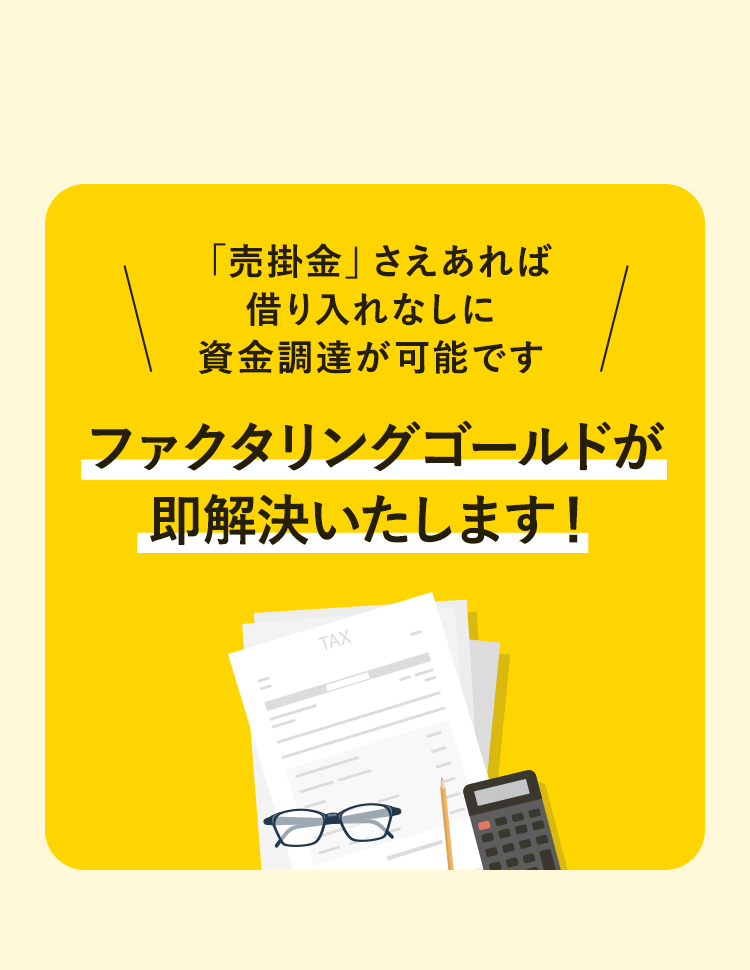 急な売掛先からの入金ずれがあり予定していた仕入れ先への支払いができなくなってしまい困っていたところ知人からファクタリングというサービスがあることを知りました。他のファクタリング会社も問い合わせをしたのですが個人事業主ということや調達金額が少額ということであまりいい反応ではなかったのですがインターネットで知ったゴールドさんに問い合わせをしたところ即日資金調達ができ、仕入れ先にも遅れることなく支払いすることができました。おかげで仕入れ先からの信用を失うことなく取引ができたので本当に助かりました。福岡が母体のようですが、九州エリア全域も密着したファクタリング会社ということで安心して取引することができました。